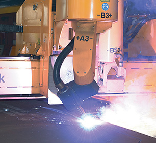 數(shù)控落地鏜銑床TH6920,采用西門子公司數(shù)控系統(tǒng),刀庫容量40把。配合回轉(zhuǎn)工作臺使用,更好地保證關(guān)鍵結(jié)構(gòu)件的形位公差要求,可完成采煤機(jī)大型結(jié)構(gòu)件的精加工,加工精度達(dá)6級