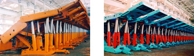 1985年研制用于厚煤層分層開采的PY400/17/35型鋪底網液壓支架。該架型穩定性好、抗扭能力強,具有鋪網空間大、架后自動鋪底網、省工省時、安全等優點。