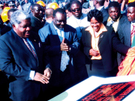 2004年11月,時任十一屆全國人大委員會委員長吳邦國到達贊比亞謙比希銅礦工地看望中國十五冶施工人員