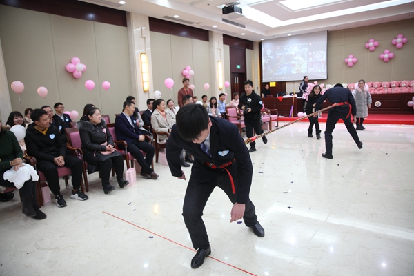 徐宗西在聯誼活動上致辭,向來自武漢大學人民醫院的領導及青年員工表示了熱烈的歡迎,向參加此次活動的單身男女青年送上了美好的祝福。隨后,活動正式拉開序幕,進入了游戲互動環節。現場主持人一起帶動所有的男女嘉賓進行了游戲互動,游戲環節設置了武松打虎、浪漫節奏、趣味拔河賽、不期而遇、下午茶、環保時裝秀、袋鼠跳跳跳、愛情招聘會等活動項目。游戲過程中,男女嘉賓躍躍欲試,氣氛十分活躍,每輪游戲結束后,為參與游戲活動的男女嘉賓頒發了小禮物,同時,在游戲過程中,最后完成任務的一組男女嘉賓要接受懲罰,他們各自通過以才藝展示、以及在主持人引導帶動下幽默的語言和默契的配合等形式完成懲罰任務,贏得了現場熱烈的掌聲、歡呼聲和陣陣歡笑聲,現場的氣氛愈加熱烈,將整個聯誼活動的氣氛推向了高潮。幾輪游戲過后,參加游戲的男女嘉賓之間有了一定的了解。告白和牽手是聯誼活動的重頭大戲,在“真情告白”環節中,由男青年手持玫瑰花向心儀的女青年真情告白。最終,此次聯誼活動成功牽手了21對男女青年。