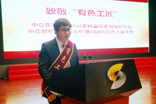 “有色工匠”代表——中色非礦自動化采礦培訓團隊負責人蔣先堯作先進事跡報告