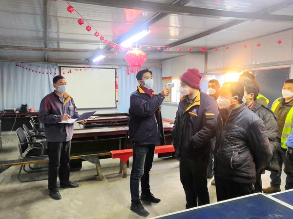 十五冶三公司東營項目部陳天寶為員工測量體溫