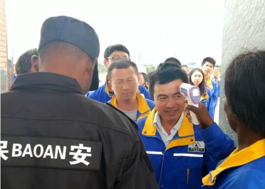 十五冶剛果(金)迪茲瓦采礦項目部為員工測量體溫
