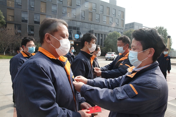 徐宗西在講話中指出,新冠肺炎疫情發(fā)生以來(lái),在中國(guó)有色集團(tuán)黨委的正確領(lǐng)導(dǎo)下,公司各級(jí)黨組織及全體黨員干部沖鋒在前、英勇奮戰(zhàn),為打贏疫情防控阻擊戰(zhàn)作出了積極貢獻(xiàn)。疫情是一次大考,考出了責(zé)任擔(dān)當(dāng)。疾風(fēng)知?jiǎng)挪荩一馃捳娼稹T谝咔樽顕?yán)重的時(shí)刻,面對(duì)疫情最嚴(yán)重的地區(qū)——武漢,中國(guó)十五冶一公司、三公司等單位廣大黨員舍小家為大家,主動(dòng)請(qǐng)戰(zhàn),逆行馳援,奮力參與緊急馳援湖北省婦幼保健院(光谷院區(qū))的突擊建設(shè)任務(wù),鏖戰(zhàn)三晝夜、戰(zhàn)風(fēng)斗雪,充分發(fā)揮了黨員先鋒模范作用,圓滿完成突擊建設(shè)任務(wù),為挽救病人生命和健康搶得了時(shí)間,在疫情大考面前展現(xiàn)出了崇高的黨性操守,交出了一份高分答卷。疫情防控是沒(méi)有硝煙的戰(zhàn)場(chǎng),是檢驗(yàn)黨員干部初心使命的考場(chǎng),也是廣大黨員干部踐行入黨誓言的賽場(chǎng)。他代表中國(guó)十五冶黨委,對(duì)參與突擊建設(shè)的全體將士致以崇高的敬意和衷心的感謝。他強(qiáng)調(diào),在突擊建設(shè)任務(wù)中,涌現(xiàn)出了許多先進(jìn)模范人物,姜權(quán)、余文新2名同志是其中的代表。他希望火線入黨的兩名同志繼續(xù)秉持火線入黨的榮耀,在今后的工作學(xué)習(xí)生活中,時(shí)刻謹(jǐn)記黨員身份,以合格黨員標(biāo)準(zhǔn)嚴(yán)格要求自己,再接再厲,再顯擔(dān)當(dāng)作為。他指出,隨著疫情形勢(shì)好轉(zhuǎn),意味著一條新的起跑線即將開(kāi)始,復(fù)工復(fù)產(chǎn)、圓滿完成年度生產(chǎn)經(jīng)營(yíng)任務(wù)又是一場(chǎng)大考,他號(hào)召參與突擊建設(shè)的全體黨員和干部職工回到工作崗位之后,繼續(xù)發(fā)揚(yáng)抗疫精神、發(fā)揚(yáng)十五冶的鐵軍精神,在防疫情保生產(chǎn)中繼續(xù)勇于奮斗、擔(dān)當(dāng)作為,用愛(ài)崗敬業(yè)拼搏奉獻(xiàn)踐行初心使命,為打贏疫情防控阻擊戰(zhàn)、全面完成公司年度目標(biāo)任務(wù)作出新的更大的貢獻(xiàn)。