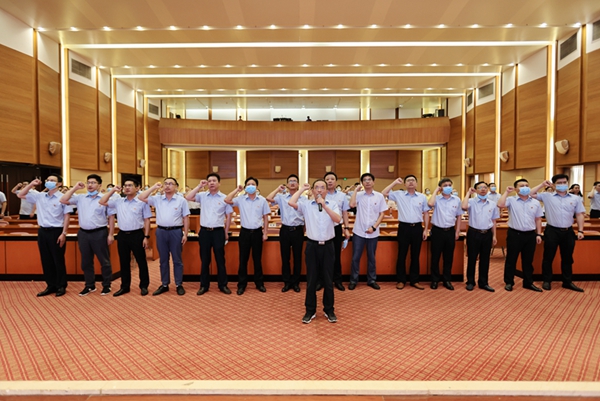 黨委書記吳禮杰帶領新黨員進行入黨宣誓、老黨員重溫入黨誓詞