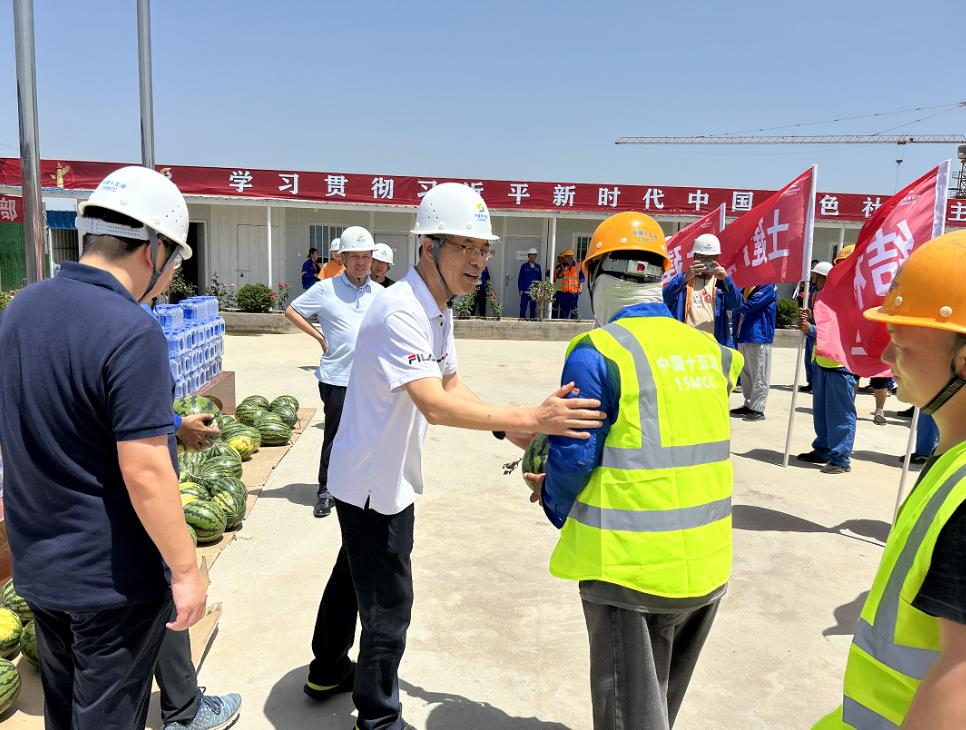 7月5日至6日,受中國十五冶黨委委托,公司黨委副書記、工會主席李偉帶領工會系統同志先后深入威海恒邦化工改造一期項目、恒邦遼上金礦項目、國興項目等多家單位開展“送清涼”慰問活動,為奮戰驕陽酷暑下的“鐵軍”帶去夏日的清涼。