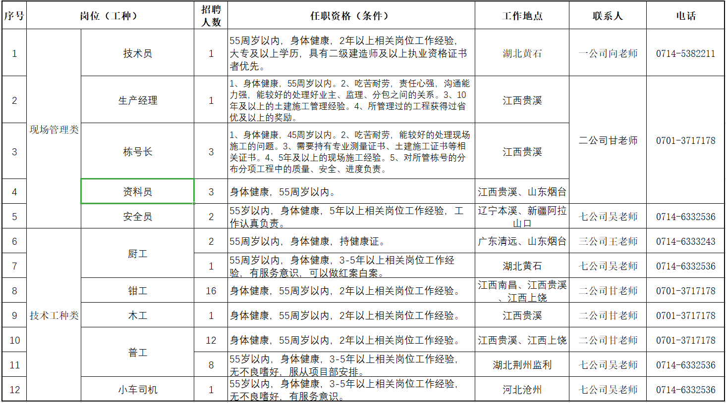 因公司發展需要,現面向社會招聘增補以下多個崗位: