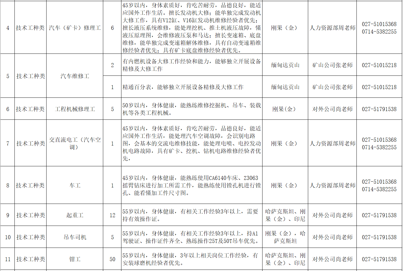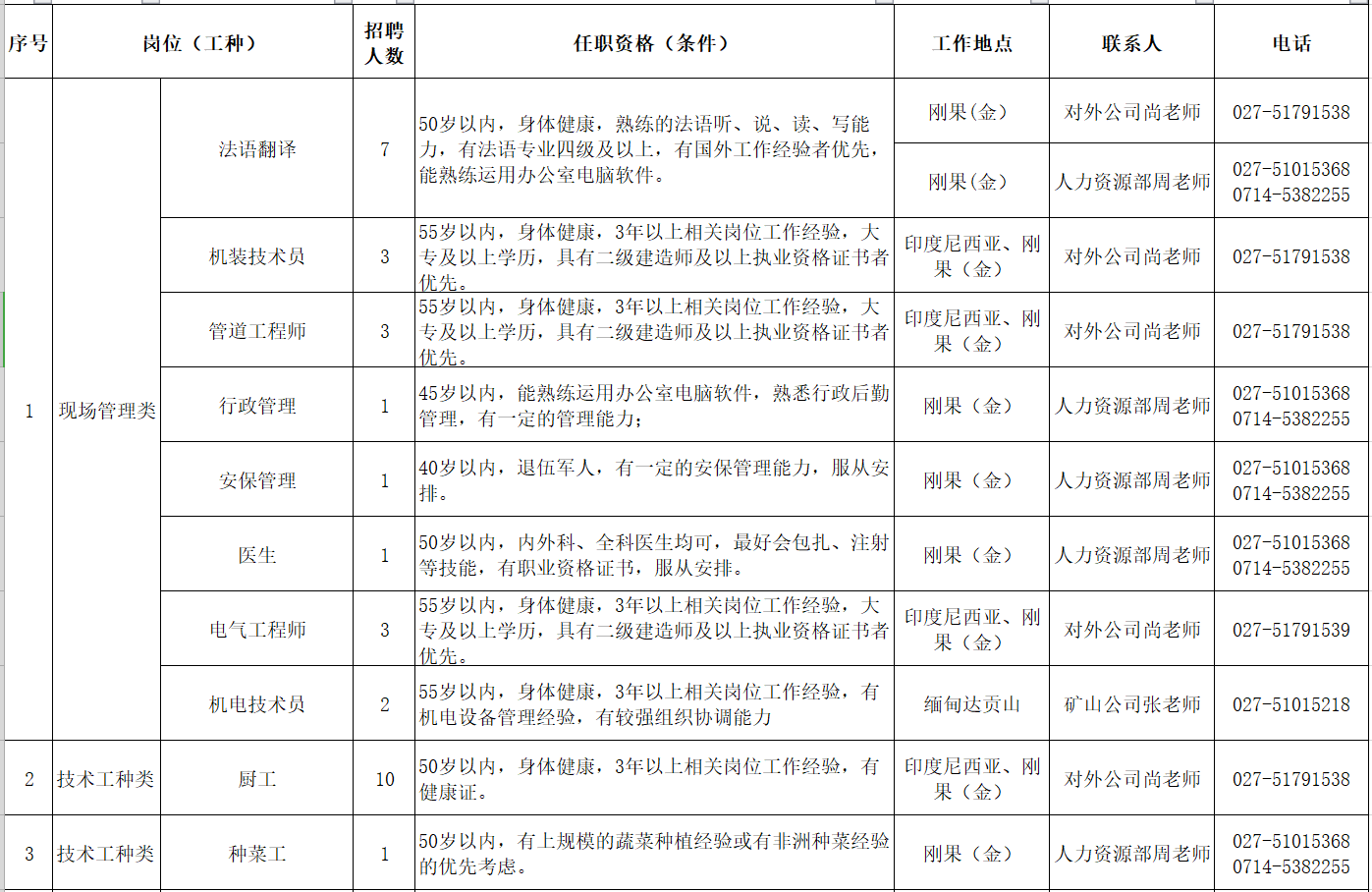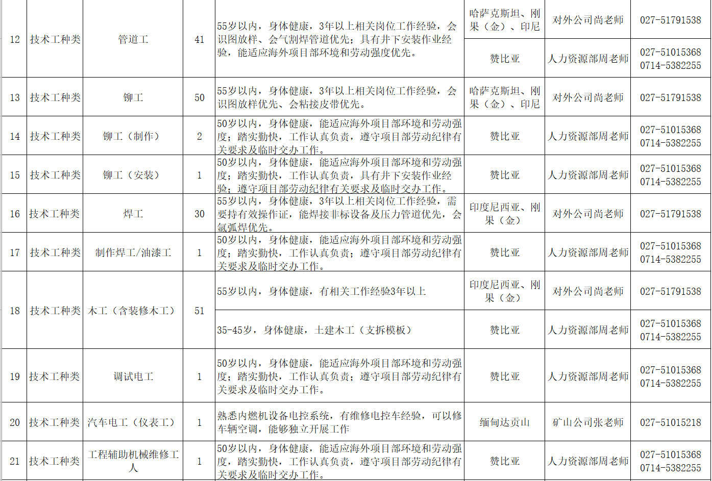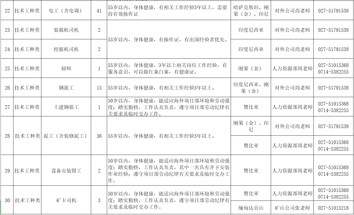 中國十五冶金建設集團有限公司2022年三季度國外勞務用工招聘計劃