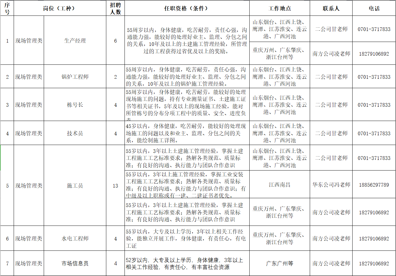 因公司發展需要,現面向社會招聘增補以下多個崗位: