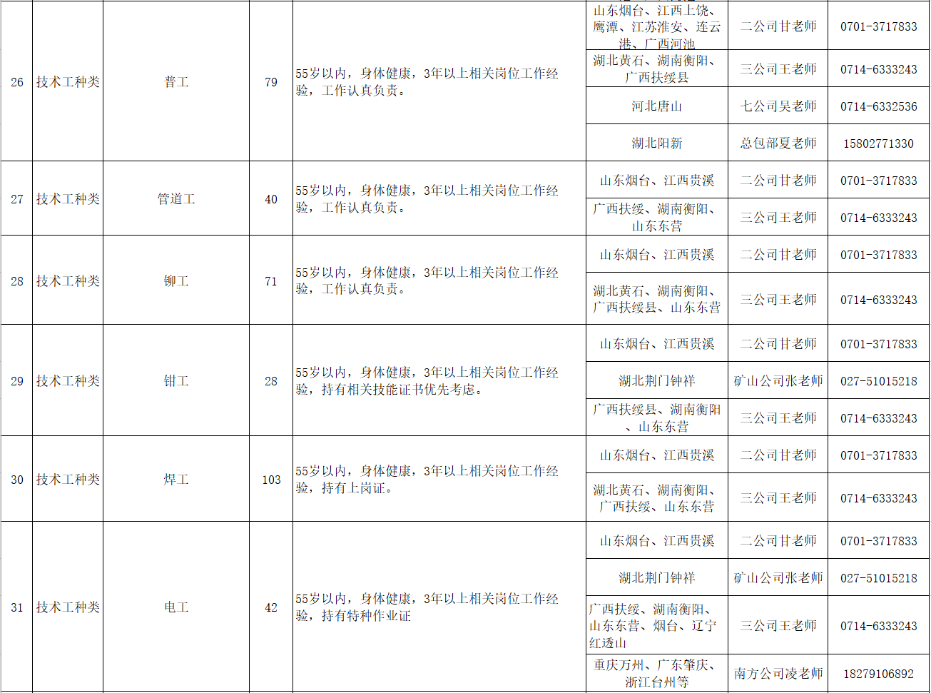 中國十五冶金建設集團有限公司2022年四季度國內勞務用工招聘計劃